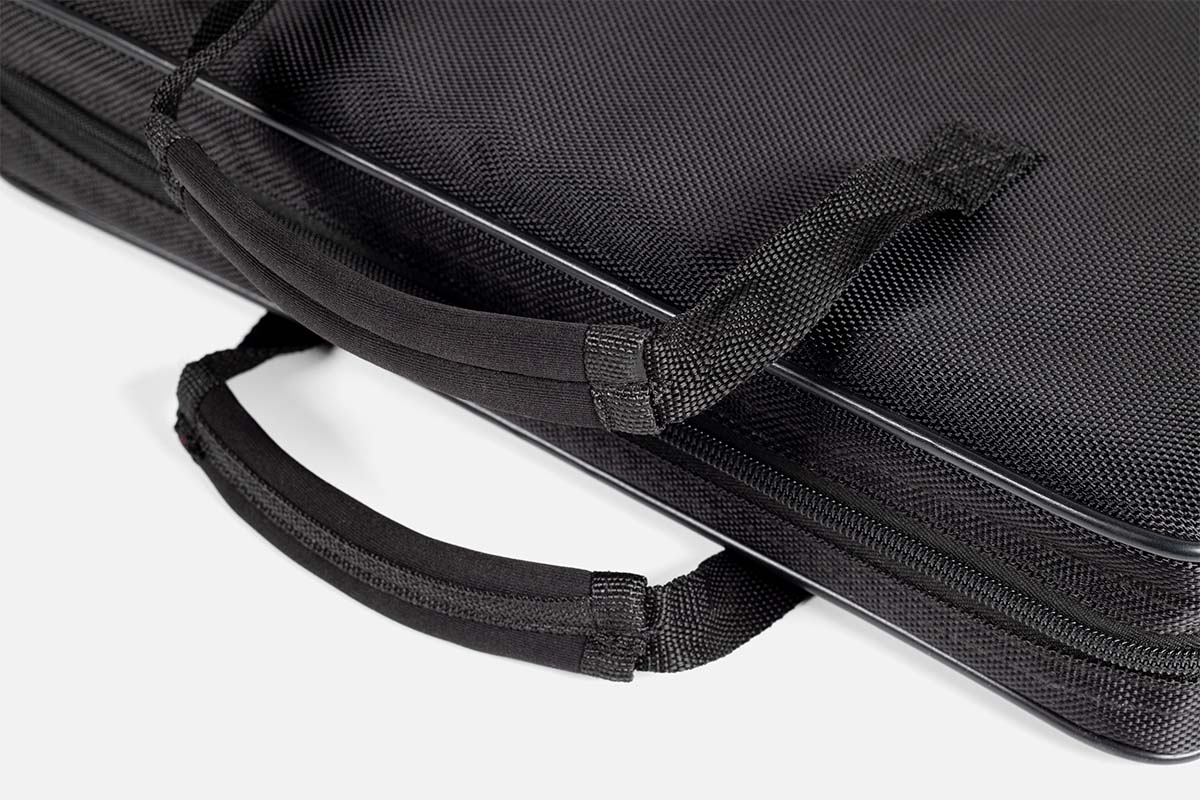 Gerätetasche mit umlaufendem Reißverschluss auf der Rückseite der Tasche. Dadurch schnell zu öffnen. Die Fenster in der Front ermöglichen die leichte Bedienbarkeit. Der Gurt mit Schulterpad garantiert bequemes Handling.